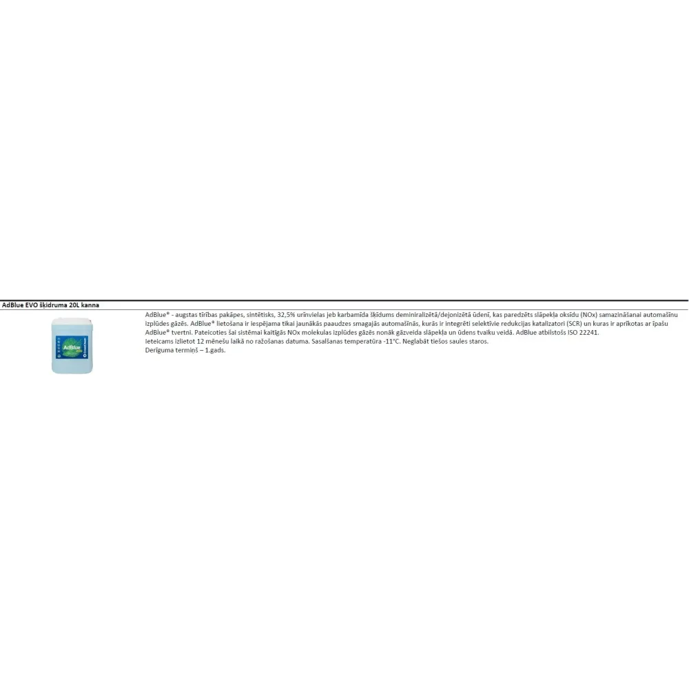 Jau iefasēts 20L kannā no ražotāja. Otrās paaudzes AdBlue