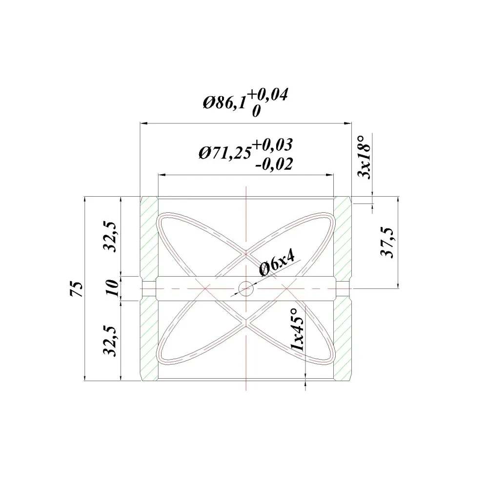 71mm ID x 86mm OD x 75mm L