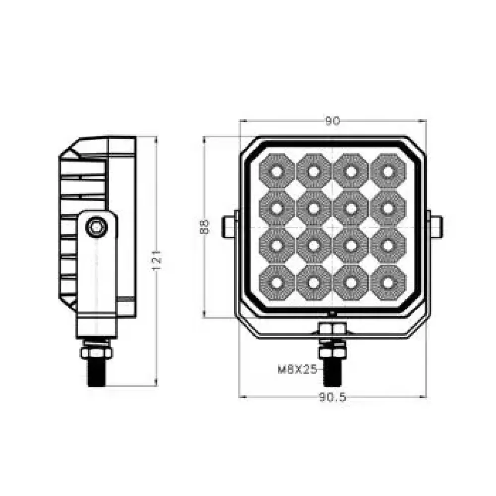 9-32V,24W,Flood, 1450LM, IP68, 16pcs 1.5W OSRAM, aluminum alloy